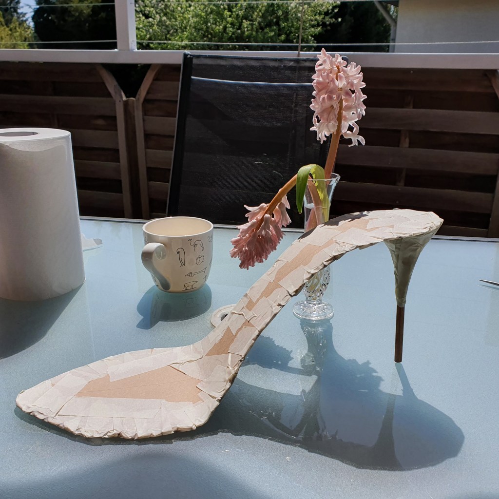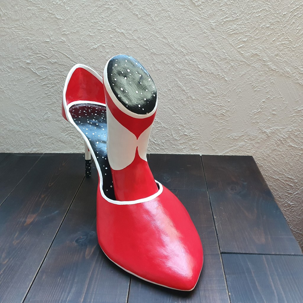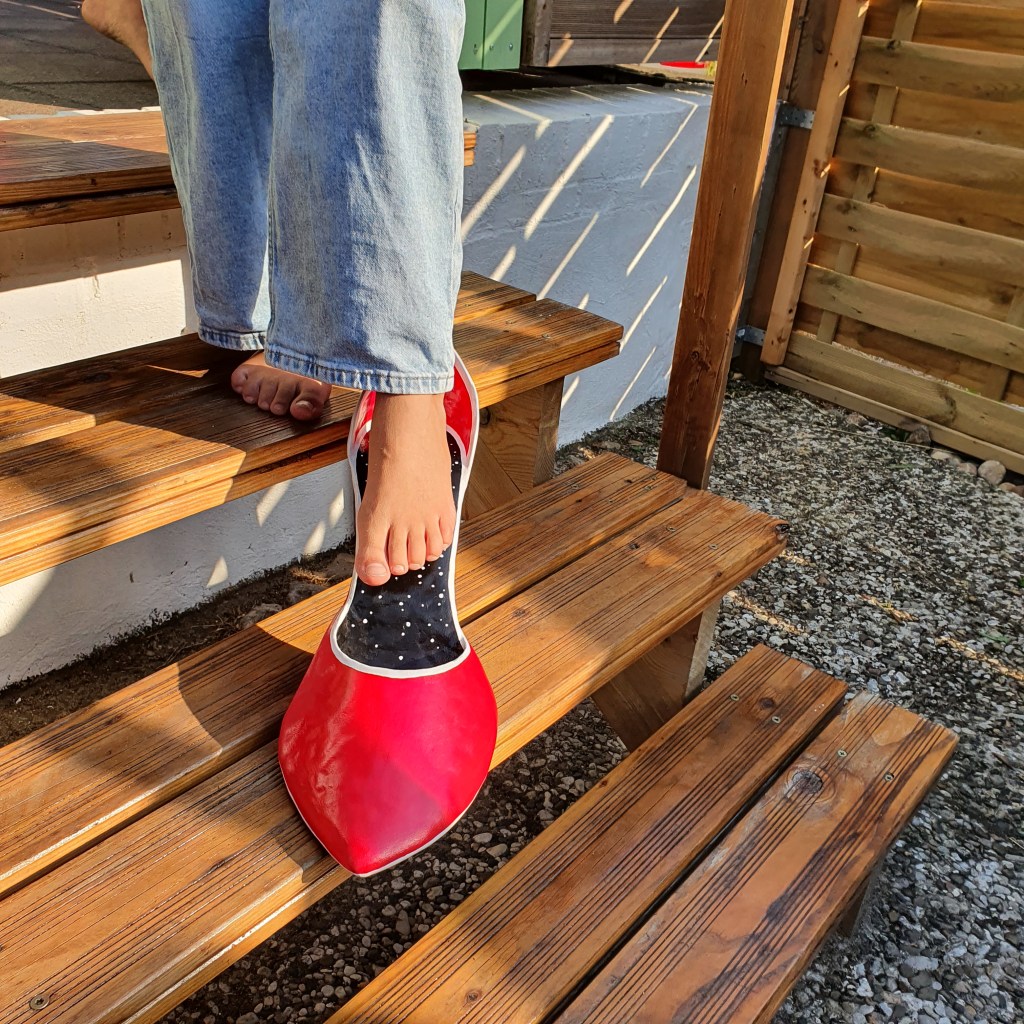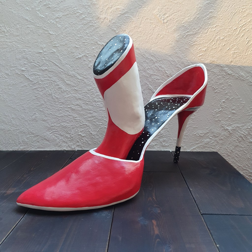 Some time later I heard the powerful song „Walking in my shoes“ from Depeche Mode. These two elements spontaneously merged into the idea for this humorous work.