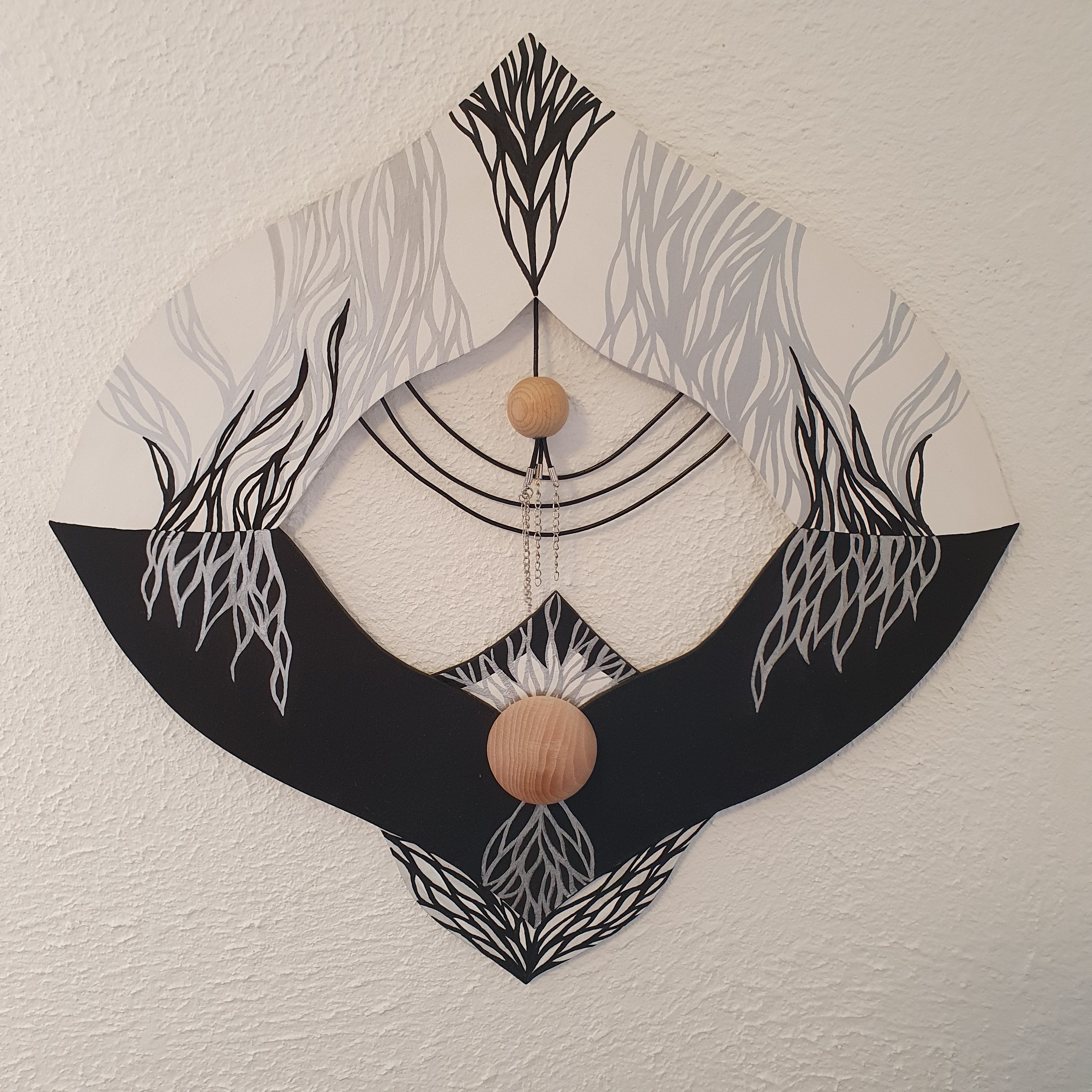 Mixed Media: Holz, Acrylfarbe, Kunstlederbänder | Wood, acrylic paint, artificial leather straps