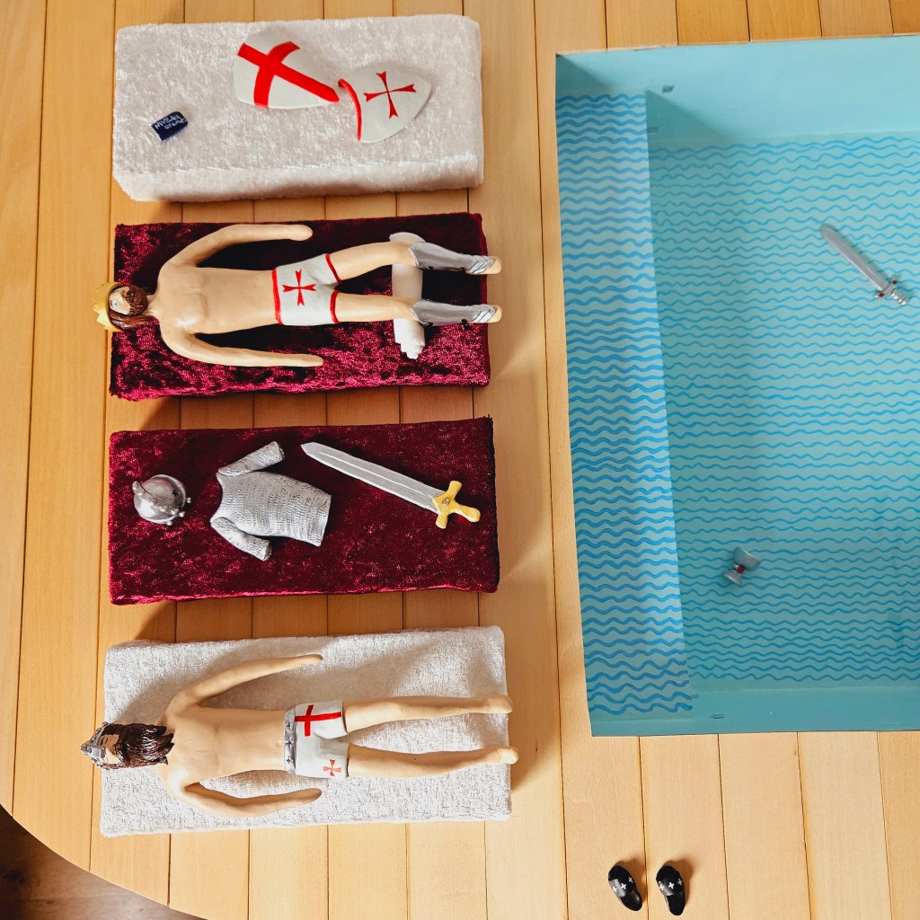 In this work, I dealt with the crusaders in an ambiguous and tongue-in-cheek way. Some set out to conquer Jerusalem – I’d rather not open the barrel of religions here, although it fits in with the theme of diversity – and now, a few centuries later, the others are sailing the seas and flooding the cities. The bloody battles of the past have turned into battles at the buffet. Wars in the name of religion unfortunately remained…